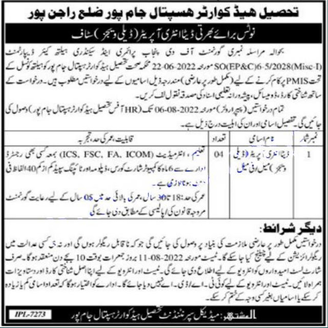 Last Date Apply 11-08-2022 in health department jobs 2022…